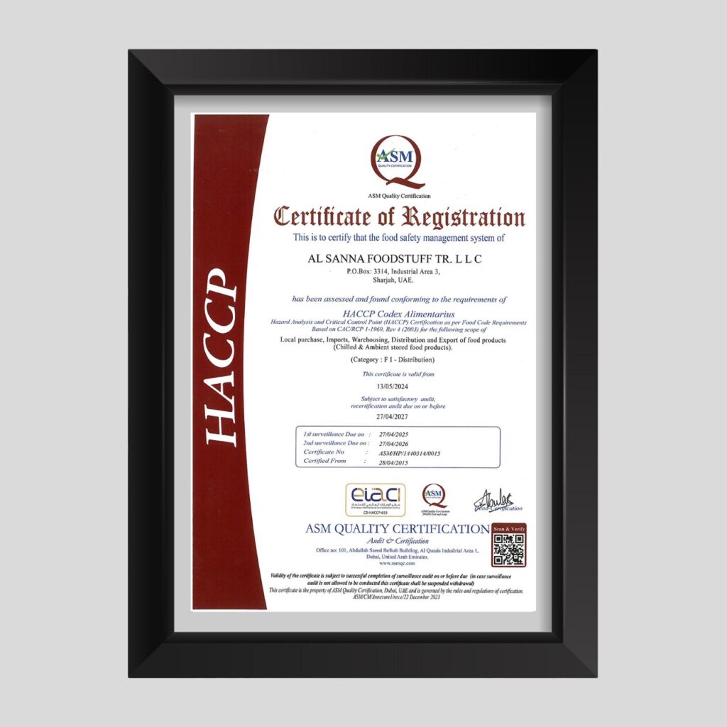Being a reliable supplier to world-wide customers, we at SAFCO always keen to prioritize safety & quality measures for our respected customers. A dedicated quality control team is established to study and implement the latest quality and food safety requirements in our internal operations for our valued customers. The systematic approach addressing all potential food safety hazards starts right from the procurement through a selection of premium suppliers, both overseas and regionally, who maintains robust food safety management systems. Our operations comprise of receiving, storage and dispatch which are streamlined with the requirements of HACCP along with the latest version of Food Safety Management System (ISO 22000:2018) and Occupational Health & Safety Management System (ISO 45001:2018) thereby ensuring the best products and services are delivered to the customers.