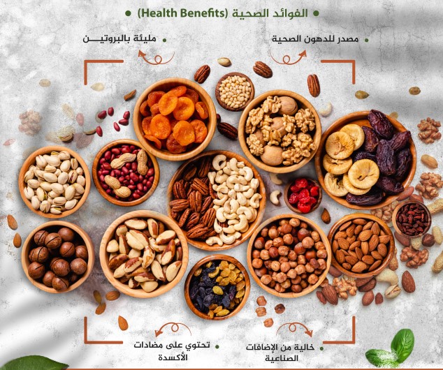 مكسرات فاخرة، مختارة بعناية ومغلفة طازجة للحفاظ على نكهتها وقيمتها الغذائية. مثالية كإضافة غنية بالألياف والدهون الصحية لمختلف الأطباق أو كوجبة خفيفة